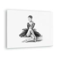 Tablou pe sticlă - Schiță a unei balerine într-o rochie neagră într-o poză gânditoare - 70x50cm - Încântată de dans - Decorațiune modernă pentru perete pentru living și dormitor ARTTOR