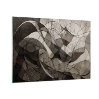 Tablou pe sticlă - O compoziție alb-negru de forme abstracte care seamănă cu pietre. - 70x50cm - Abstracție pietroasă - Decorațiune modernă pentru perete pentru living și dormitor ARTTOR
