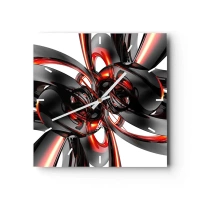Ceas de perete - Ceas pe sticlă - Mișcare în grafit și roșu - 30x30 cm