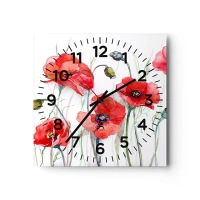 Ceas de perete - Ceas pe sticlă - Flori poloneze - 30x30 cm