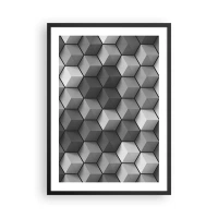 Poster în ramă neagră - Compoziție alb-negru de cuburi geometrice 3D - 50x70cm - Puzzle cubist - Decorațiune modernă pentru perete pentru living și dormitor ARTTOR