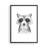 Poster în ramă neagră - Un raton drăguț înfățișat pe un fundal alb - 50x70cm - Un moment pentru emoții - Decorațiune modernă pentru perete pentru living și dormitor ARTTOR