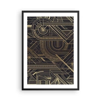 Poster în ramă neagră - Model geometric în nuanțe aurii pe fundal negru - 50x70cm - Concepte, idei, planuri - Decorațiune modernă pentru perete pentru living și dormitor ARTTOR