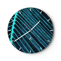 Ceas de perete - Ceas pe sticlă - Un prim-plan al unei frunze de palmier în nuanțe de verde și turcoaz. - 30x30cm - Textura verdelui - Decorațiune modernă pentru perete pentru living, bucătărie și dormitor ARTTOR