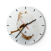 Ceas de perete - Ceas pe sticlă - O ramură de bumbac natural pe un fundal alb - 30x30cm - Moale prin natură - Decorațiune modernă pentru perete pentru living, bucătărie și dormitor ARTTOR