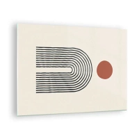 Tablou pe sticlă - Abstracție grafică cu linii și cercuri în stil retro - 70x50cm - Magnetismul formelor și al culorilor - Decorațiune modernă pentru perete pentru living și dormitor ARTTOR