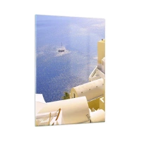 Tablou pe sticlă - Peisaj grecesc în alb și albastru - 50x70 cm