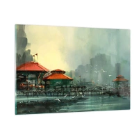 Tablou pe sticlă - O zi ploioasă în port - 120x80 cm