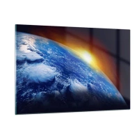 Tablou pe sticlă - Răsărit de soare deasupra planetei albastre - 120x80 cm
