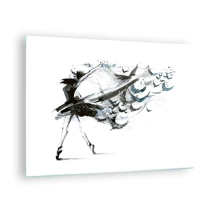 Tablou pe sticlă - Dansator în mișcare cu păsări plutitoare - 70x50cm - Magia muzicii te eliberează - Decorațiune modernă pentru perete pentru living și dormitor ARTTOR