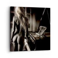 Tablou pe pânză Canvas - Nud feminin la pian în stil alb-negru - 70x50cm - Armonia perfectă a serii - Decorațiune modernă pentru perete pentru living și dormitor ARTTOR