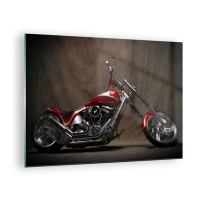 Tablou pe sticlă - Motocicletă personalizată roșie pe un fundal întunecat - 70x50cm - Frumusețea în roșu și argintiu - Decorațiune modernă pentru perete pentru living și dormitor ARTTOR