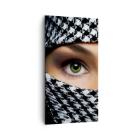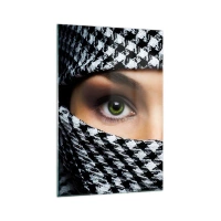 Tablou pe sticlă - Un portret al unei frumuseți cu ochii verzi - 70x100 cm