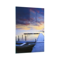 Tablou pe sticlă - Seninătate mov-auriu - 70x100 cm