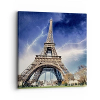 Tablou pe pânză Canvas - Turnul Eiffel cu un cer furtunos și fulgere în fundal - 70x50cm - Stăpânul furtunilor - Decorațiune modernă pentru perete pentru living și dormitor ARTTOR