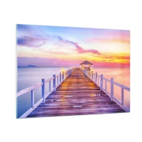 Tablou pe sticlă - Tăcerea serii în liliac-auriu - 100x70 cm