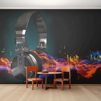 Tapet Premium Canvas - În focul muzicii - Abstracția, Muzică, Căști - 300x210 cm