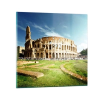Ceas de perete - Ceas pe sticlă - Colosseumul din Roma în soare - 30x30cm - Încă mai poți auzi zgomotul armelor - Decorațiune modernă pentru perete pentru living, bucătărie și dormitor ARTTOR