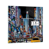 Ceas de perete - Ceas pe sticlă - Peisaj urban colorat noaptea - 30x30cm - O noapte mare și comică - Decorațiune modernă pentru perete pentru living, bucătărie și dormitor ARTTOR