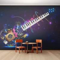 Tapet Standard Eco - Grafică colorată a unei chitare electrice și a unei claviaturi de pian - 100x70cm - Și totul este în regulă - Decorațiune modernă pentru perete pentru living și dormitor ARTTOR