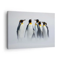 Tablou pe pânză Canvas - Un grup de pinguini imperiali în ceața de iarnă - 70x50cm - Întâlnire în rochie de seară - Decorațiune modernă pentru perete pentru living și dormitor ARTTOR