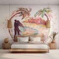 Tapet Autoadeziv Deluxe Sticker - Vacanța romantică - oameni, Palmier de nuca de cocos, plajă - 300x210 cm