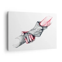 Tablou pe pânză Canvas - Mâini artistice ținându-se una de alta într-un stil minimalist - 70x50cm - Ești pe mâini bune - Decorațiune modernă pentru perete pentru living și dormitor ARTTOR
