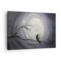 Tablou pe pânză Canvas - Pasăre neagră pe o creangă în lumina lunii - 70x50cm - Cheia pentru misterul nopții - Decorațiune modernă pentru perete pentru living și dormitor ARTTOR