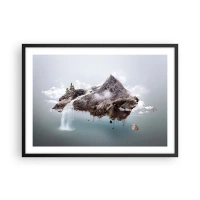 Tablou pe sticlă - O insulă plutitoare de munte cu o cascadă într-un stil suprarealist. - 70x50cm - Prin ochii unui suprarealist - Decorațiune modernă pentru perete pentru living și dormitor ARTTOR