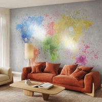 Tapet Standard Eco - Hartă a lumii colorată în stil acuarelă stropită - 100x70cm - Toate culorile lumii - Decorațiune modernă pentru perete pentru living și dormitor ARTTOR