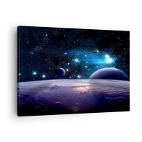 Tablou pe pânză Canvas - O vedere a spațiului cosmic cu planete și stele - 70x50cm - Tot singuri? - Decorațiune modernă pentru perete pentru living și dormitor ARTTOR