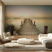 Tapet Autoadeziv Deluxe Sticker - Înainte de răsărit, zori, lumină - Peisaj, Lac, Pod de lemn - 300x210 cm