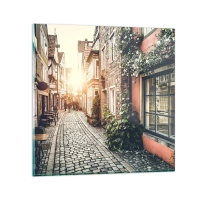 Tablou pe sticlă - Străduță în splendoare roz - 30x30 cm