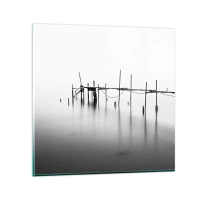 Ceas de perete - Ceas pe sticlă - Un dig minimalist pe ape calme în nuanțe de gri - 30x30cm - Și dacă lumea nu ar exista? - Decorațiune modernă pentru perete pentru living, bucătărie și dormitor ARTTOR