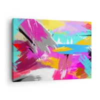 Tablou pe pânză Canvas - Abstracție dinamică în culori intense - 70x50cm - Mâzgălituri cu pensula - Decorațiune modernă pentru perete pentru living și dormitor ARTTOR