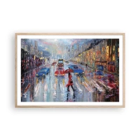 Poster în ramă de stejar deschis - O după-amiază ploioasă în oraș - 91x61 cm
