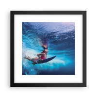 Ceas de perete - Ceas pe sticlă - Un surfer sub apă într-o scenă dinamică - 30x30cm - Profunzimea bucuriei - Decorațiune modernă pentru perete pentru living, bucătărie și dormitor ARTTOR