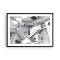 Tablou pe sticlă - Un labirint de scări într-un spațiu suprarealist - 70x50cm - Paradoxurile spațiului - Decorațiune modernă pentru perete pentru living și dormitor ARTTOR