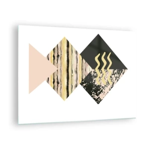 Tablou pe sticlă - Compoziție geometrică abstractă cu triunghiuri și texturi - 70x50cm - Aparent simplu - Decorațiune modernă pentru perete pentru living și dormitor ARTTOR