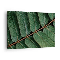 Tablou pe pânză Canvas - Fotografie macro cu frunze verzi cu picături de rouă - 70x50cm - Într-un ritm verde - Decorațiune modernă pentru perete pentru living și dormitor ARTTOR