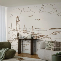 Tapet Premium Sand - Schiță de amintiri de vară - Grafică, Coasta, Far - 100x70 cm