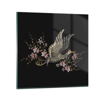 Tablou pe sticlă - Pasăre exotică brodată - 70x70 cm