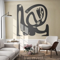 Tapet Standard Eco - Siluetă abstractă a unei figuri pe un fundal bej - 100x70cm - Aproape Picasso - Decorațiune modernă pentru perete pentru living și dormitor ARTTOR