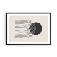 Tablou pe sticlă - Grafică minimalistă cu cerc și linii negre - 70x50cm - Tremurând și încrezător - Decorațiune modernă pentru perete pentru living și dormitor ARTTOR