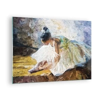 Tablou pe sticlă - O balerină aplecată în față într-o rochie albă pictată cu o textură de ulei - 70x50cm - Dintr-un tablou de Degas - Decorațiune modernă pentru perete pentru living și dormitor ARTTOR