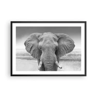 Tablou pe sticlă - Portret alb-negru al unui elefant în savană - 70x50cm - Bun venit în lumea mea - Decorațiune modernă pentru perete pentru living și dormitor ARTTOR