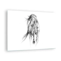 Tablou pe sticlă - O schiță a unui cal în galop într-un stil minimalist - 70x50cm - Într-un trap grațios - Decorațiune modernă pentru perete pentru living și dormitor ARTTOR