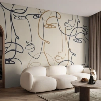 Tapet Standard Eco - Fețe de contur desenate cu o singură linie - 100x70cm - Portret multiplicat - Decorațiune modernă pentru perete pentru living și dormitor ARTTOR