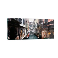 Tablou pe sticlă - Peisaj venețian cu gondolă și pod - 100x40 cm