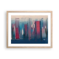 Poster în ramă de stejar deschis - Compoziție verticală în albastru și roșu - 50x40 cm